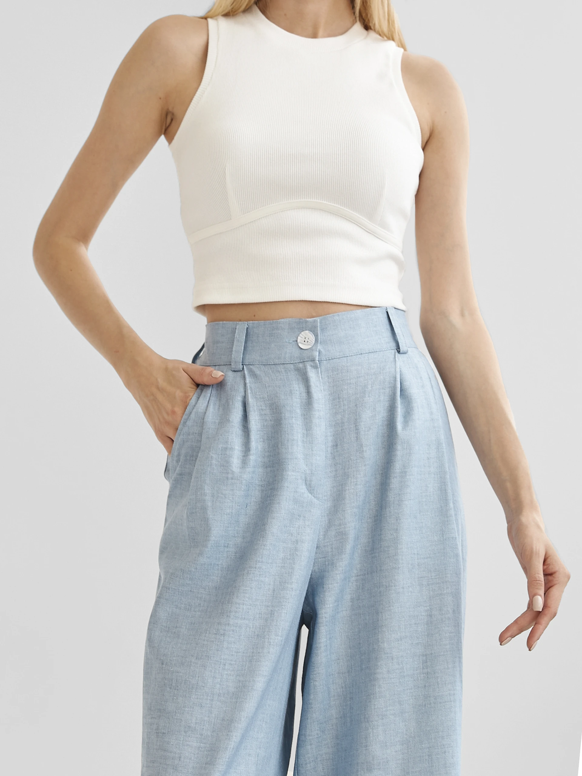 Light blue linen pants that bring a breath of fresh air to your summer wardrobe.