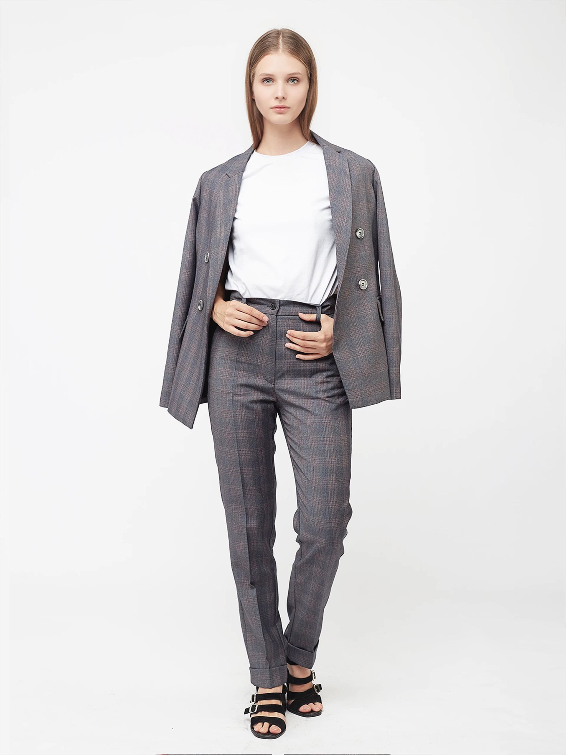 A relaxed gray suit set that combines effortless comfort with professional polish.